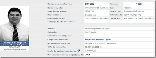 Batoré (PP-SP) - Humorista, quer uma vaga na Câmara Federal
